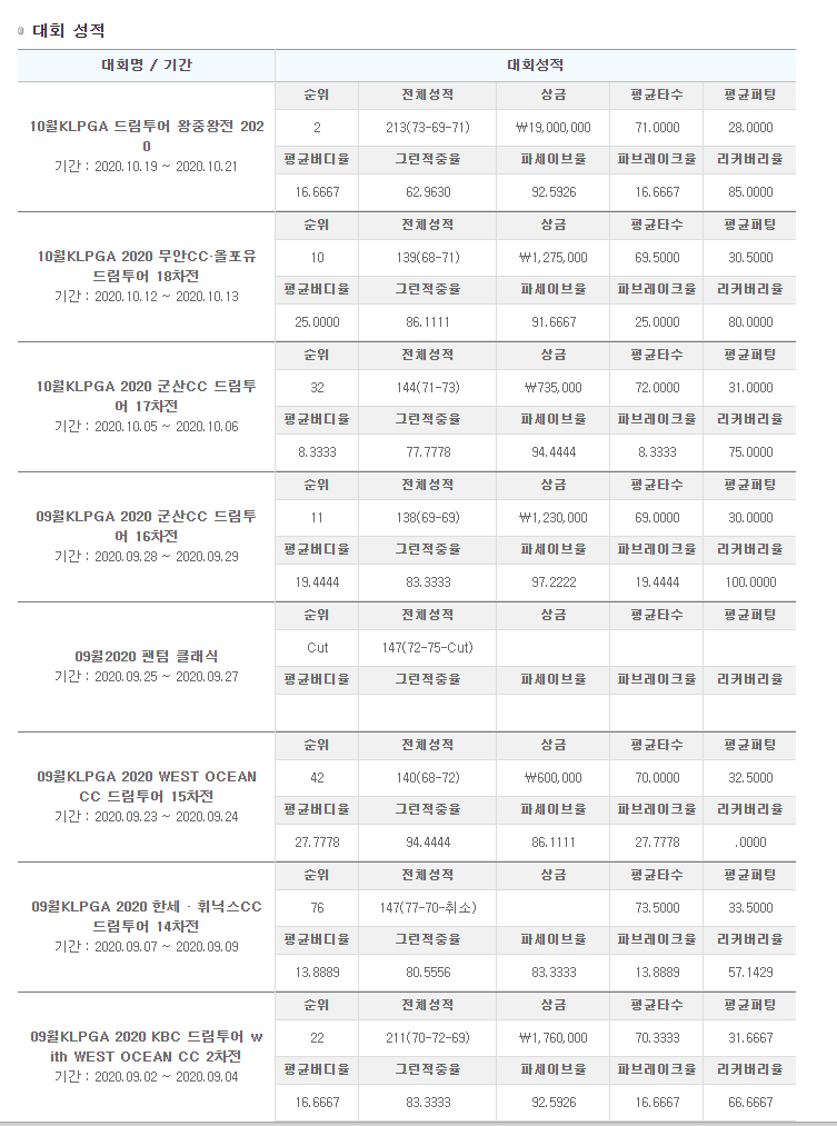 LPGA에서 이세희 선수를 검색하면 그녀가 참가했던 대회와 성적을 알 수 있는데요